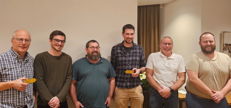 von links: Jahresmeisterschaft 2025 – Peter Planzer, Raphael Imholz und Markus Heusi (1. Kategorie), Marco Walker, Bruno Geisser und Kevin Müller (2. Kategorie)